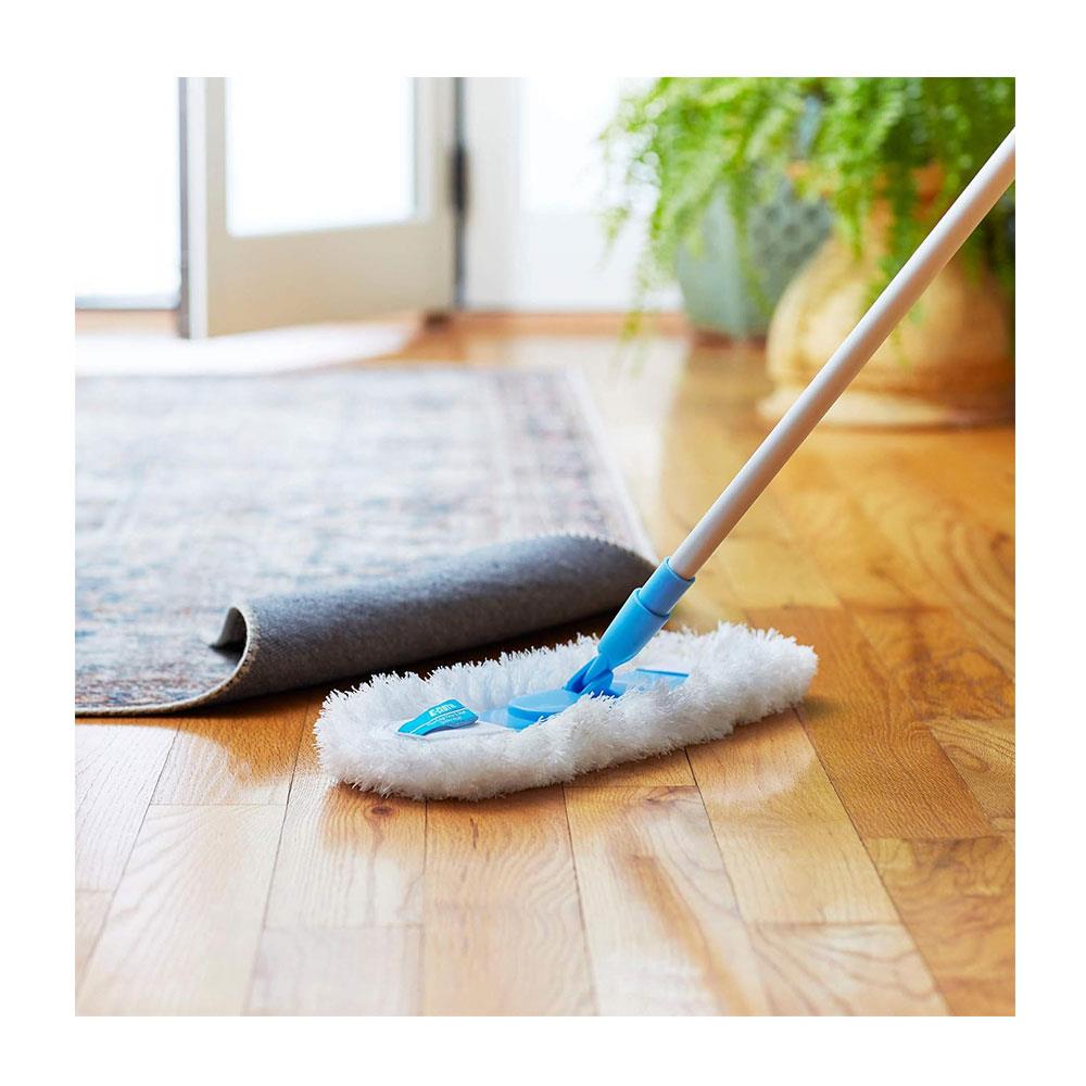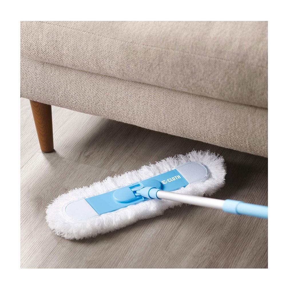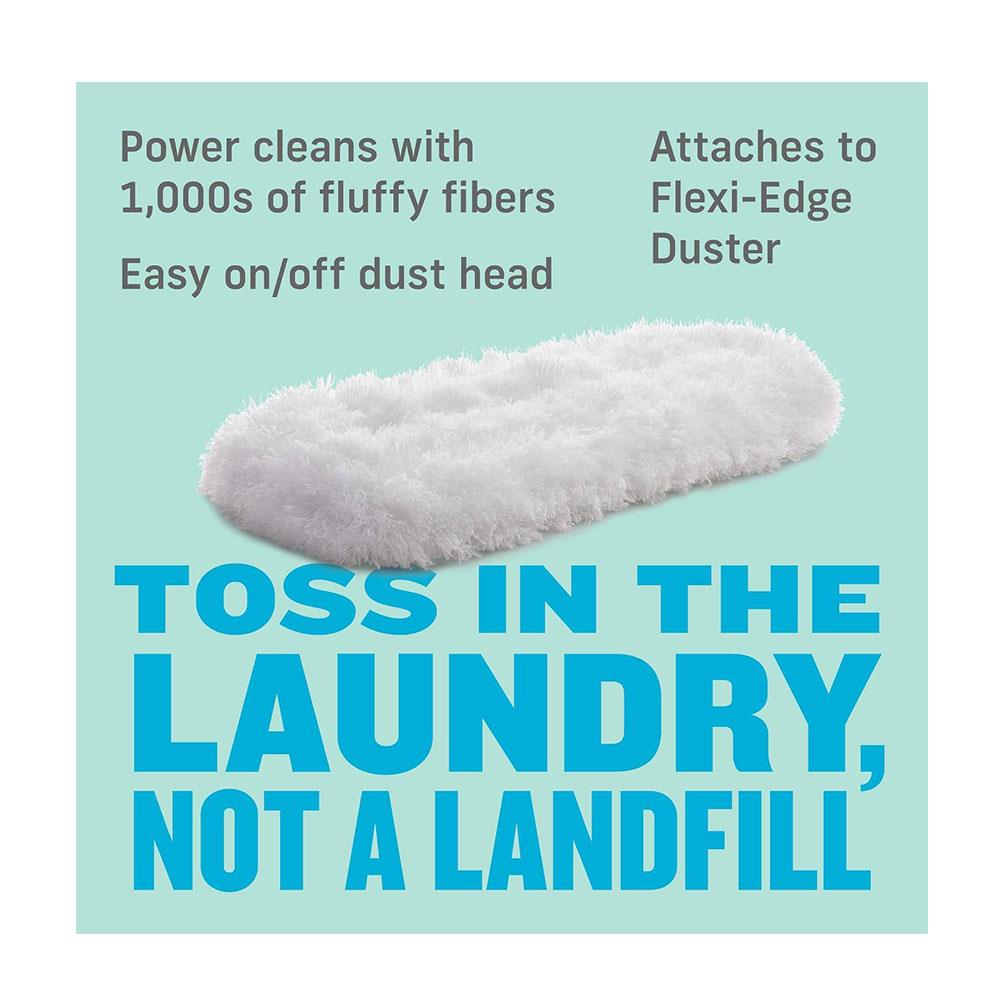 E-Cloth flex-edge floor & wall duster replacement head removes dust, dirt, hair, cobwebs, and allergens from floors, walls and feelings.