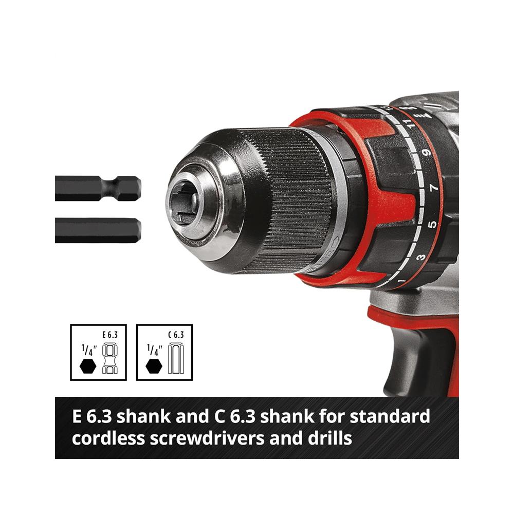 • Quick-change bit holder (60 mm) with E 6.3 shaft made of carbon steel