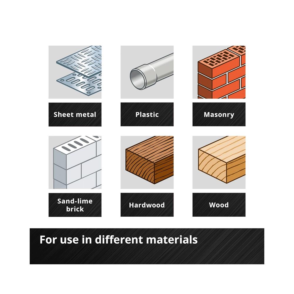 • 8x roll-forged HSS metal drill bits (2x 3 / 2x 4 / 2x 5 / 2x 6 mm)