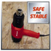 • Stands squarely and solidly thanks to a large base area, for maximum safety and hands-free operation while working