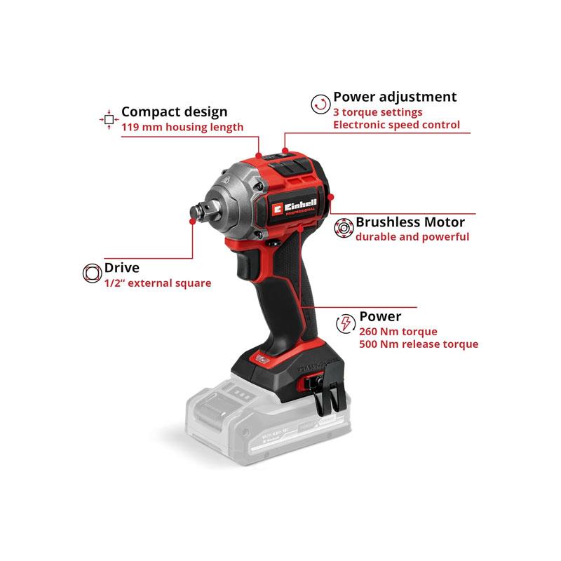 Einhell Professional TP-CW 18/260-C Li BL – Solo 18V Power X-Change Cordless Impact Wrench Without Battery Red