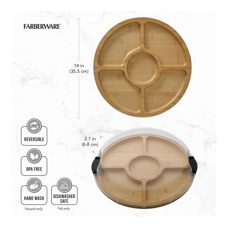 Farberware Build-A-Board Bamboo Serving Board with 5 Compartments & Clear Locking Lid – 35.5cm Dual-Sided Charcuterie & Snack Board | Premium Bamboo Server UK