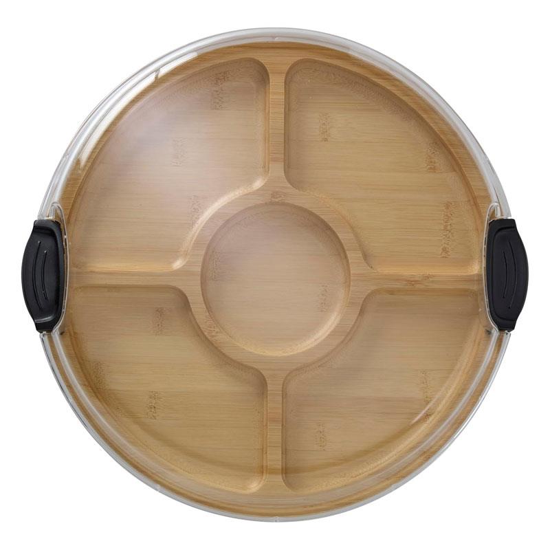 Farberware Build-A-Board Bamboo Divided Serving Board Five Compartments Clear Locking Lid 35.5cm Wood - Image 2
