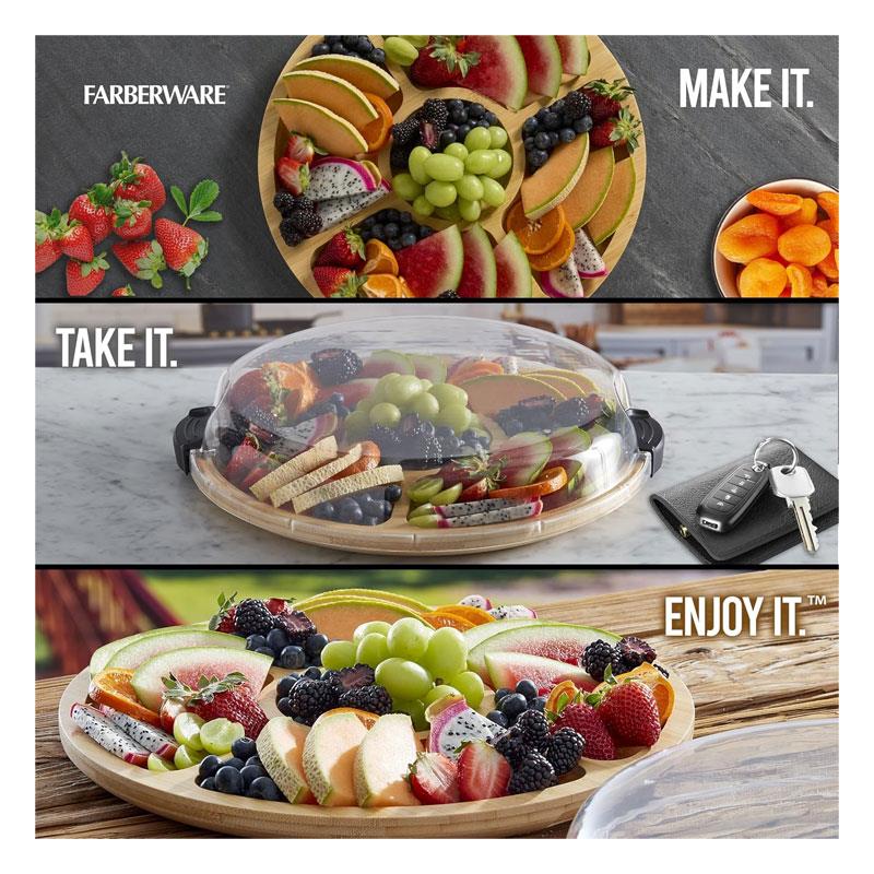 Farberware Build-A-Board Bamboo Divided Serving Board Five Compartments Clear Locking Lid 35.5cm Wood - Image 5
