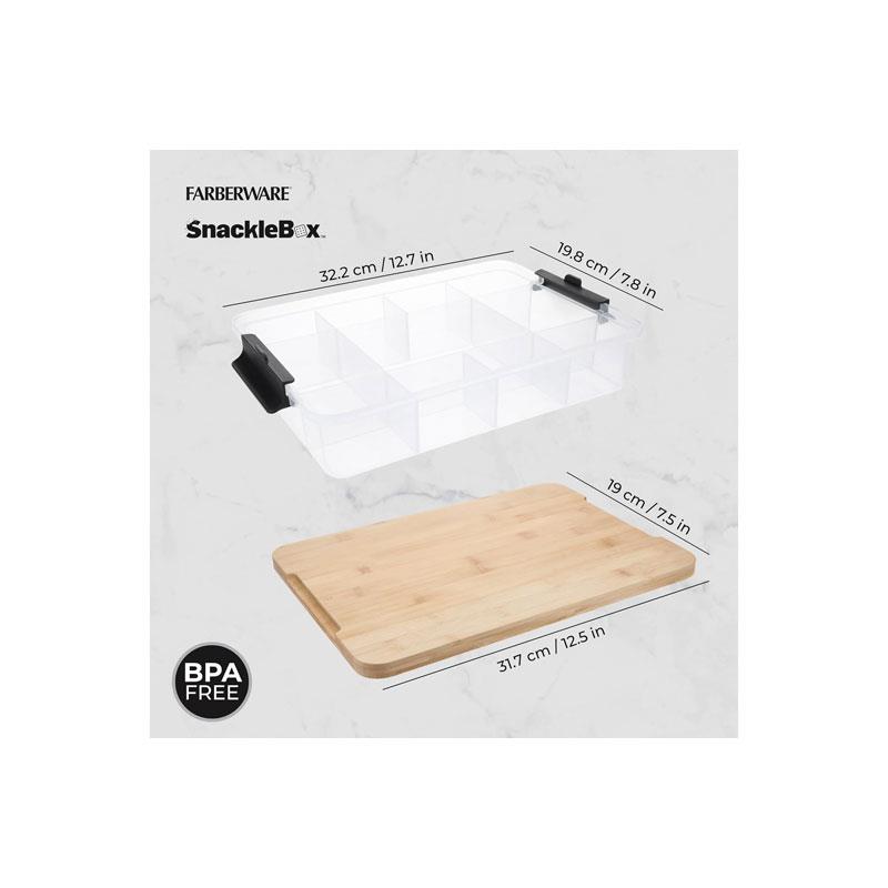 The Farberware SnackleBox Bamboo Serving Board and Snack Organizer Box is a smart, portable solution for organising and serving snacks at home or on the go. Designed for busy lifestyles, this all-in-one snack organiser features 7 spacious compartments that keep meats, cheeses, fruits, nuts, sweets, and nibbles neatly separated and easy to access.