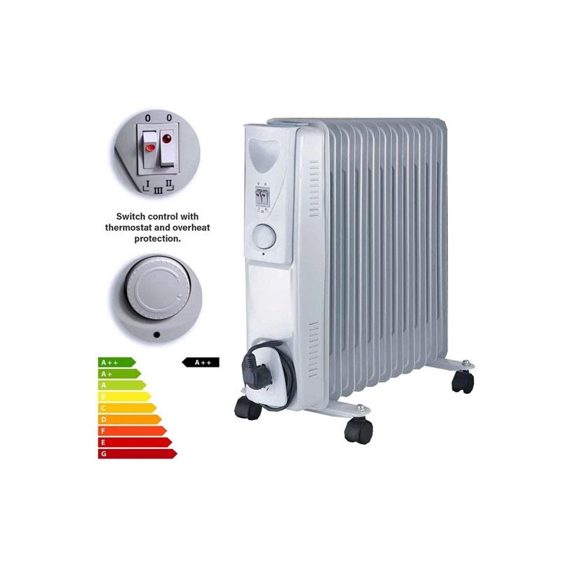 Fine Elements 11 Fin Oil Filled Radiator Heater 2500W 3 Heat Settings Adjustable Thermostat Overheat Protection White