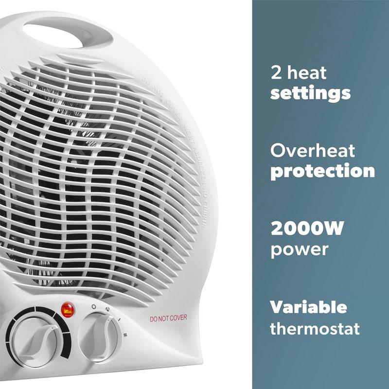 • Heat Settings: 2 (1000W & 2000W) + Fan Only Mode