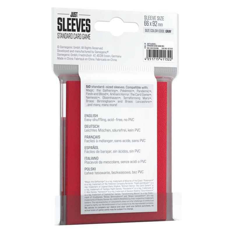Gamegenic Just Sleeves Standard Card Game Red Size Colour Code Grey (50)