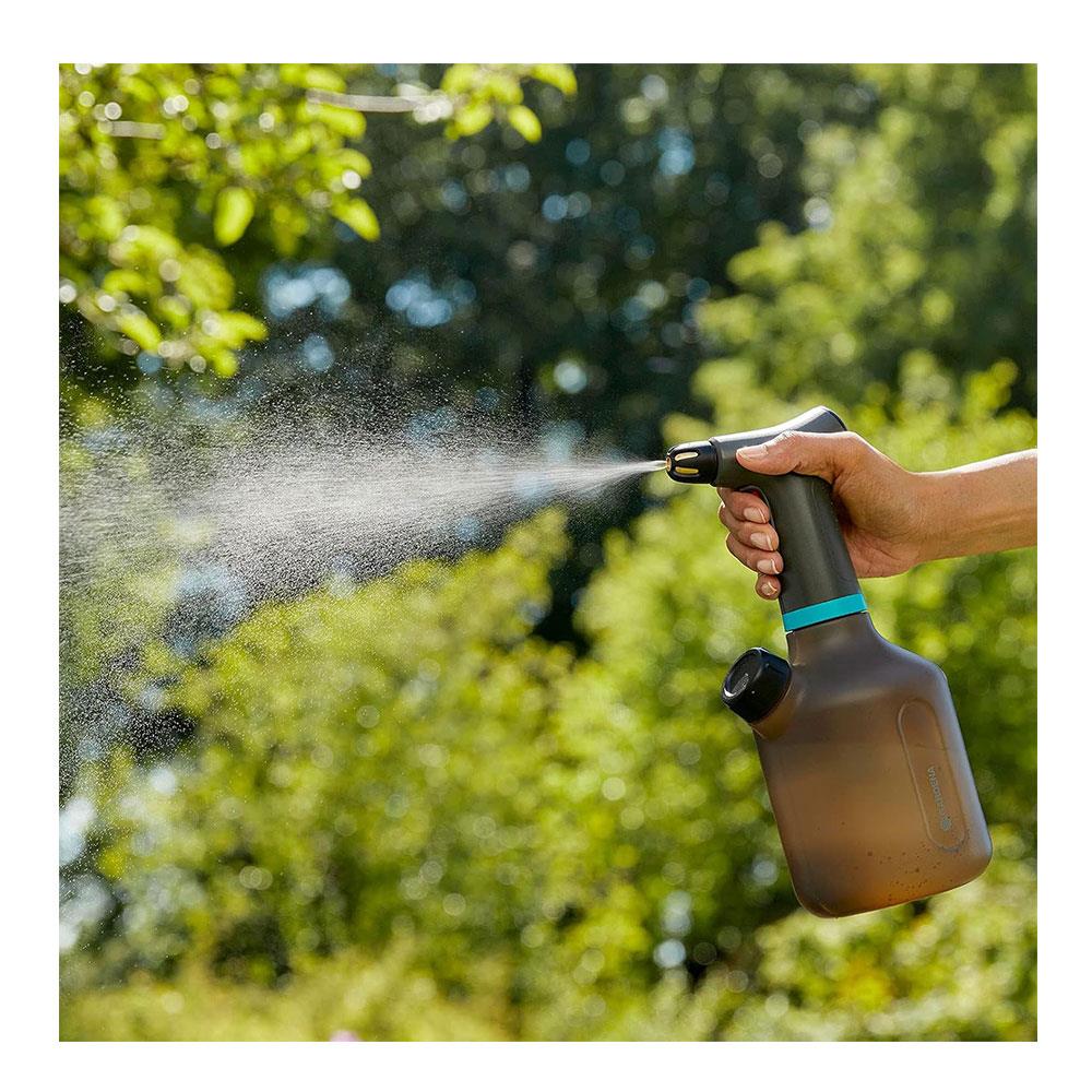 • Spray without pumping: The battery-operated Garde produces either a fine mist (max. 4.5 hours) or a spray jet (max. 4 hours) with 2 x AA batteries (batteries not included)