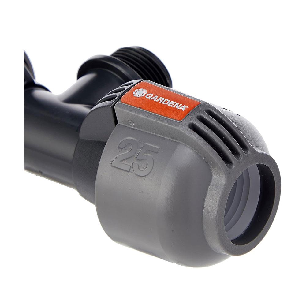 • Box contents: 1x Gardena T-piece with 25 mm x 3/4 inch male thread