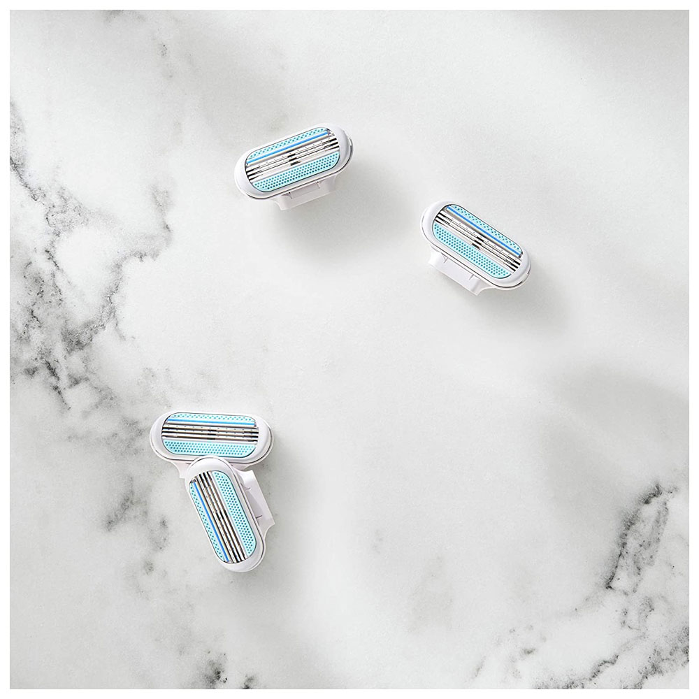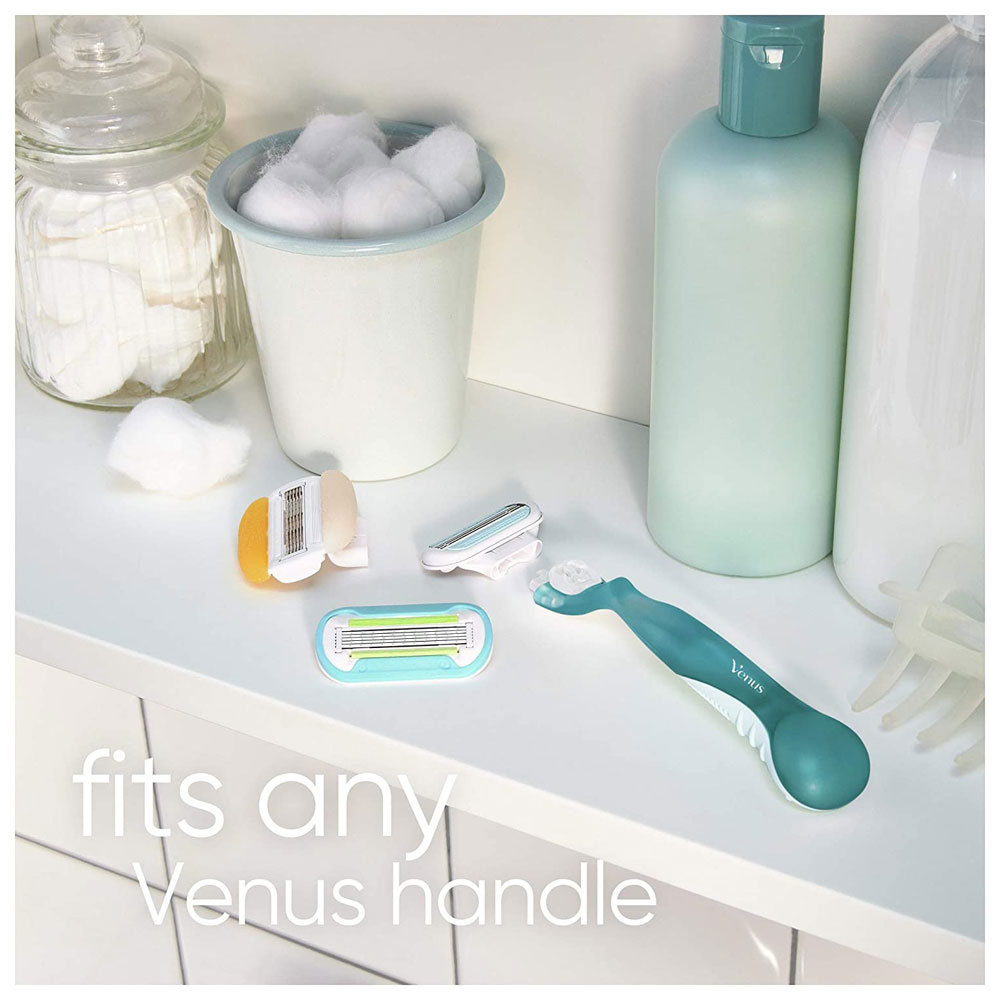 “Gillette Venus Cartridges – 4 Cartridges Named after Goddess Venus, the goddess of beauty and appearances, Venus Cartridge and blades are designed for women who desire soft, smooth, and irresistible skin devoid of unwanted hair. The strong action of Venus blades removes hair, but keeps the skin gentle and baby soft. The head hugs your curves and easily fits into tricky hair removal areas. Indicator strips with Aloe Vera and Vitamin E provide skin nourishment. After all, every woman deserves to be desired like Goddess Venus. Three blades, surrounded by soft protective cushions. The cushions gently smooth out your skin for a close, smooth shave. A pivoting rounded head hugs your curves and fits easily into hard-to-shave areas. The indicator strip with a touch of aloe has a blue stripe that fades when you are no longer getting the optimal Venus shave. Just one stroke for a close shave & silky smooth skin. Individually sealed to be stored in the shower. All Venus cartridges fit all Venus razor handles. Gillette Venus Classic razor blade refills are the mother of women’s blades: the original. They feature a lasting lubrastrip with a touch of aloe for an easy glide, giving you a close and clean shaving experience.”