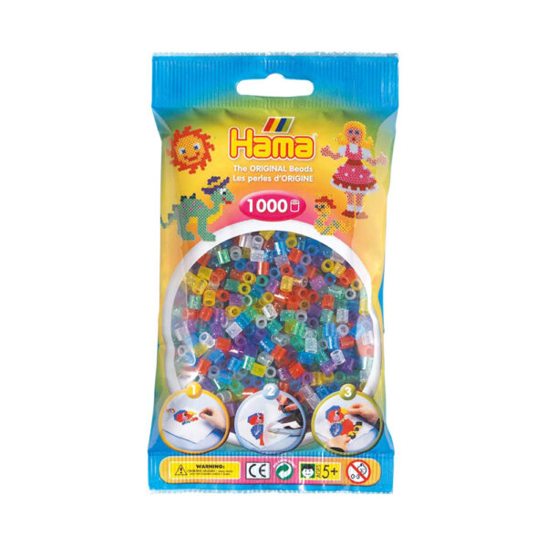 Hama 1000 Midi Beads In Bag Cylindrical Plastic - Translucent Glitter Mix - Image 3