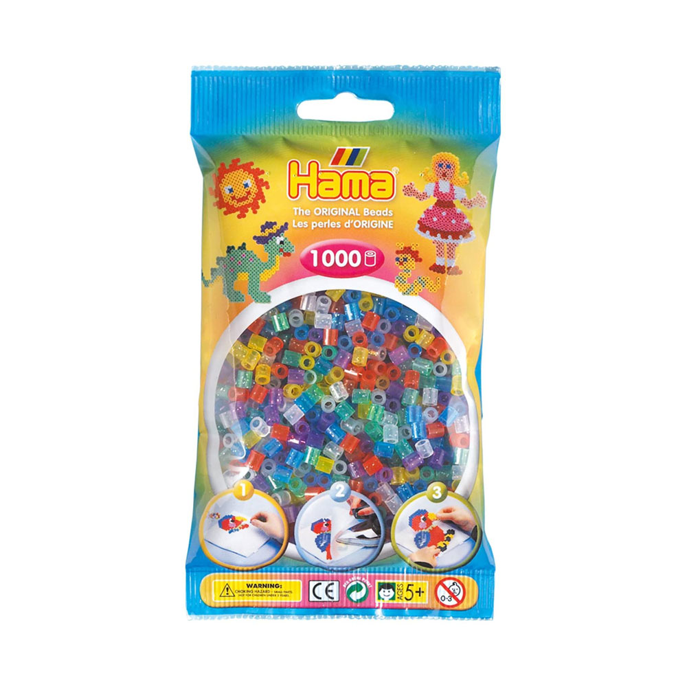 Hama 1000 Midi Beads In Bag Cylindrical Plastic – Translucent Glitter Mix
