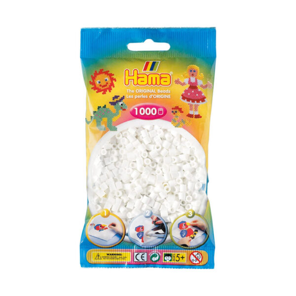 Hama 1000 Midi Beads In Bag Cylindrical Plastic – White