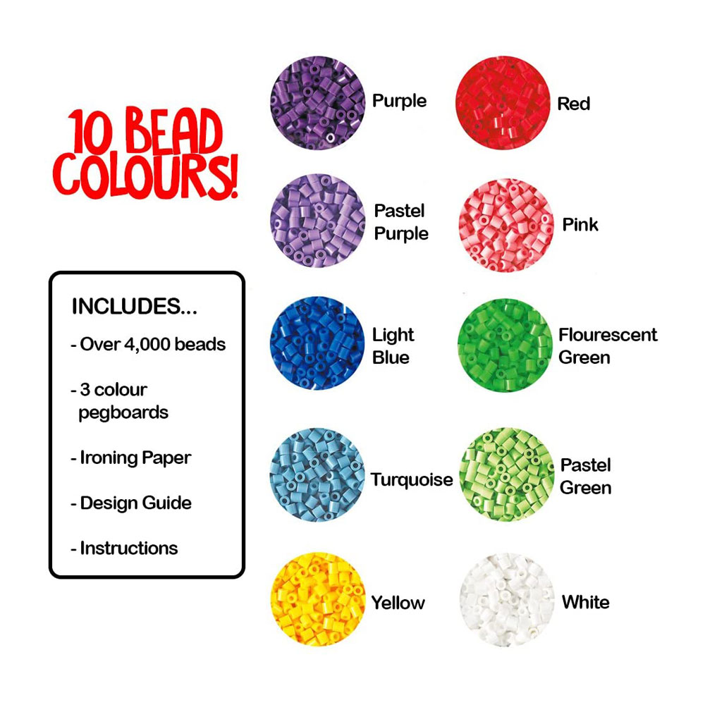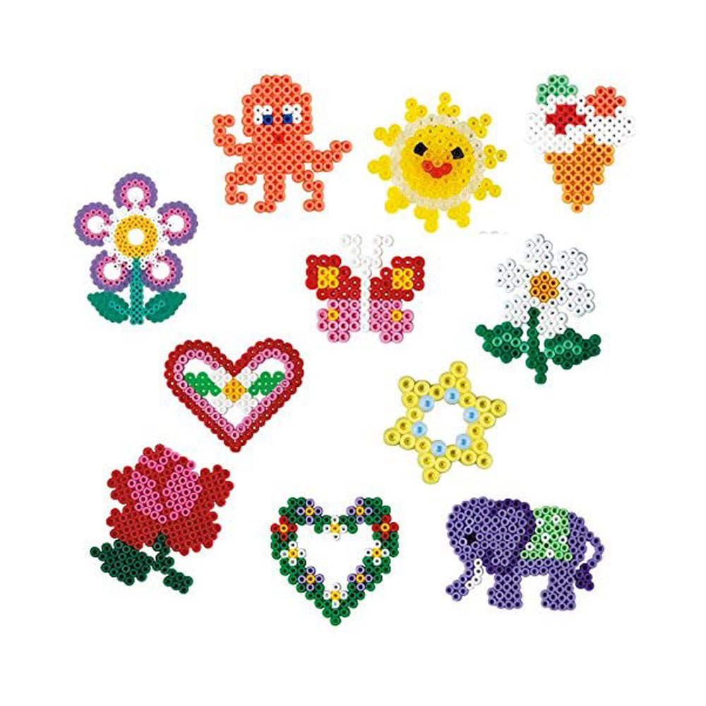 • Contents: Approx. 4.000 beads, 3 pegboards: Small hexagonal, small heart and flower, Colour printed design sheet and ironing paper