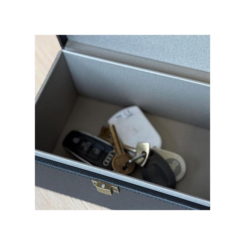 Its compact rectangular structure with secure catch closure helps store items safely while maintaining a stylish appearance suitable for home, office, or entryway tables. Ideal for safeguarding modern smart devices, protecting privacy, and preventing remote hacking attempts.
