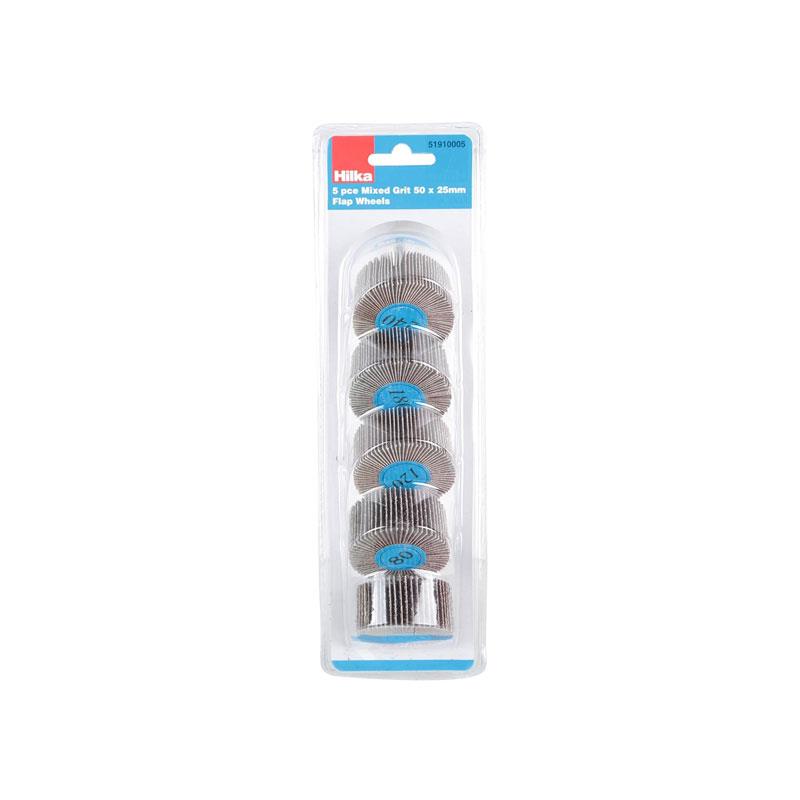 Home / DIY & Tools / Hand Tools / Hand Tools Accessories / Hilka Mixed Grit Flap Wheels 5 Piece Set 50 x 25mm Aluminium Oxide Sanding Wheels for Wood & Metal