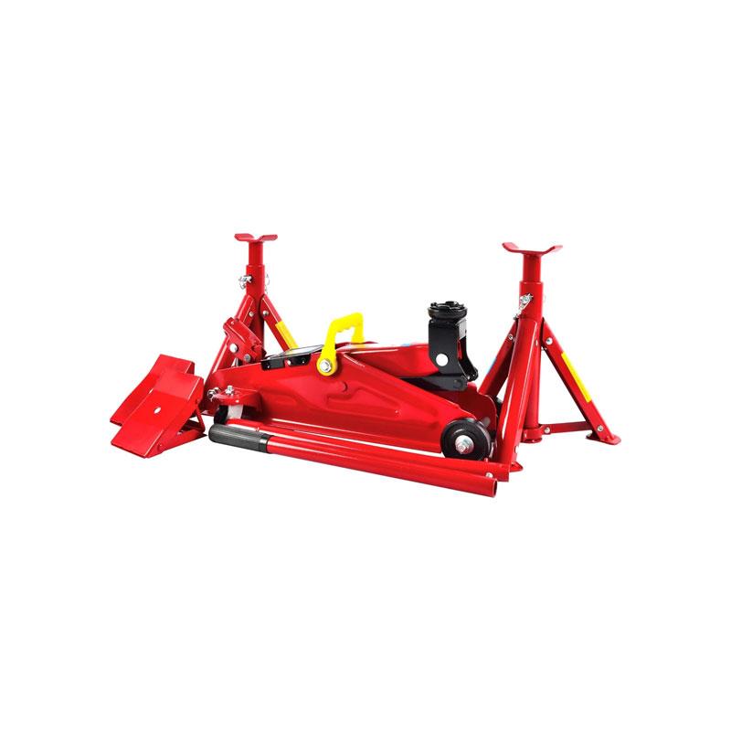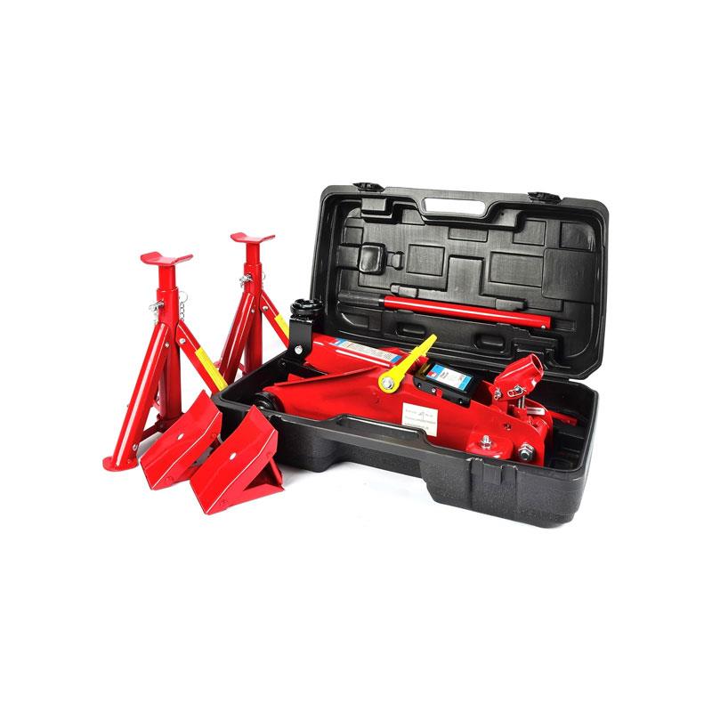 Designed for DIY mechanics and home garages, this car trolley jack kit covers essential lifting and safety needs in one practical set.