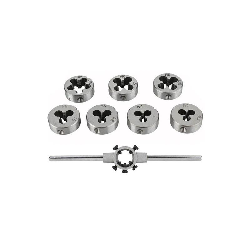 • Full Professional Set: Includes 7 dies, 7 taper taps, 7 plug taps, 7 bottoming taps, plus die handle, tap wrench, screwdriver, and screw pitch gauge.