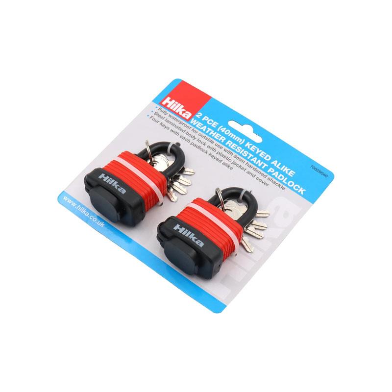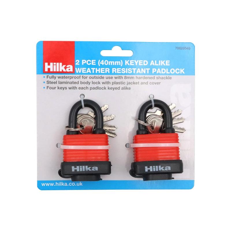 Hilka Tools Weather Resistant Keyed Alike Padlock 40mm 2 Piece Red