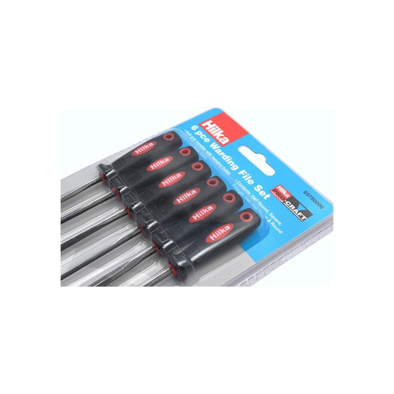 Hilka Tools 6 piece warding file set 100mm soft grip handle