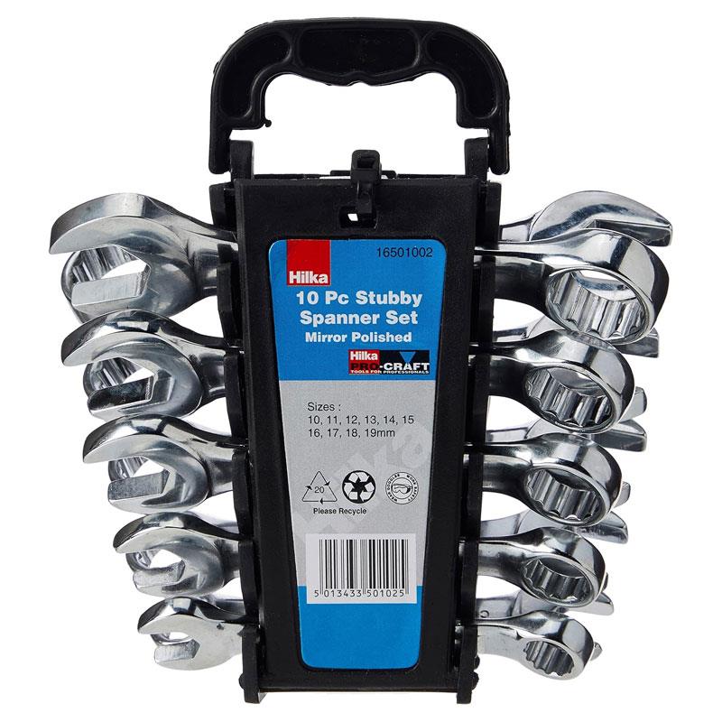 Compact, strong, and built to last – the Hilka 10 Piece Stubby Combi Spanner Set is an essential addition to any toolkit.