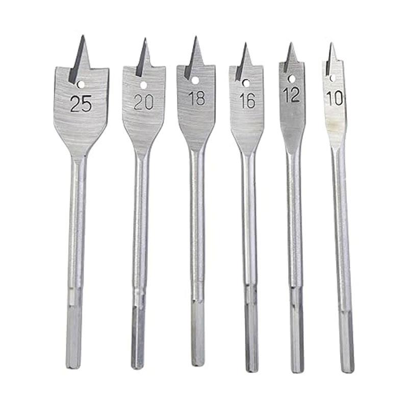 Hilka Tools 6 Piece Flat Wood Bit Set | 10–25mm High-Speed Steel Drill Bits | Hardened & Tempered for Fast, Clean Wood Cutting