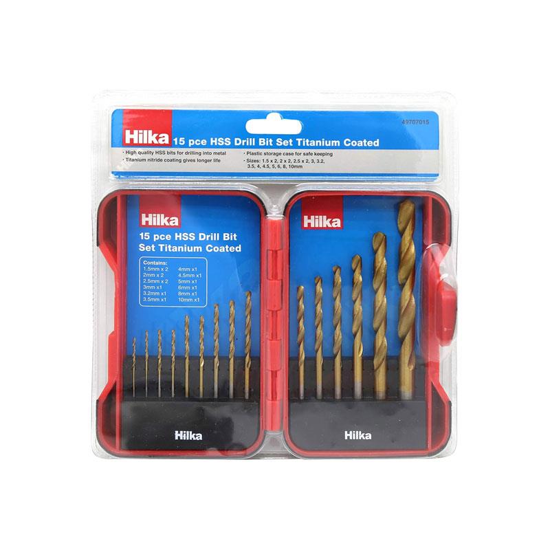 Hilka Tools HSS Drill Bit Set Titanium Coated 15 Pieces