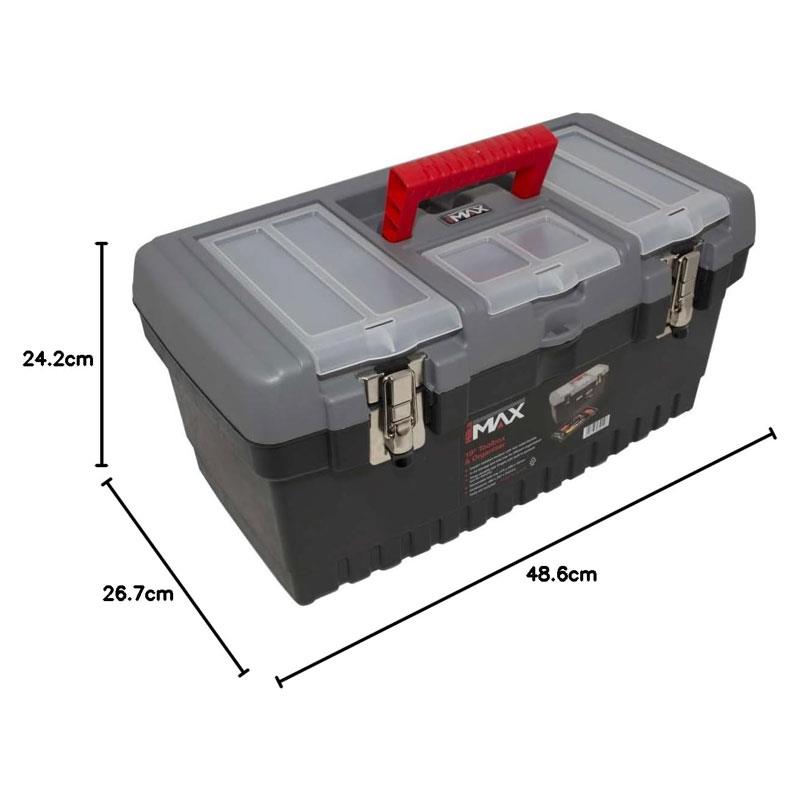 Hilka Tools Max 19 Inch Toolbox & Organiser Lockable Tool Box Black/Grey - Image 2