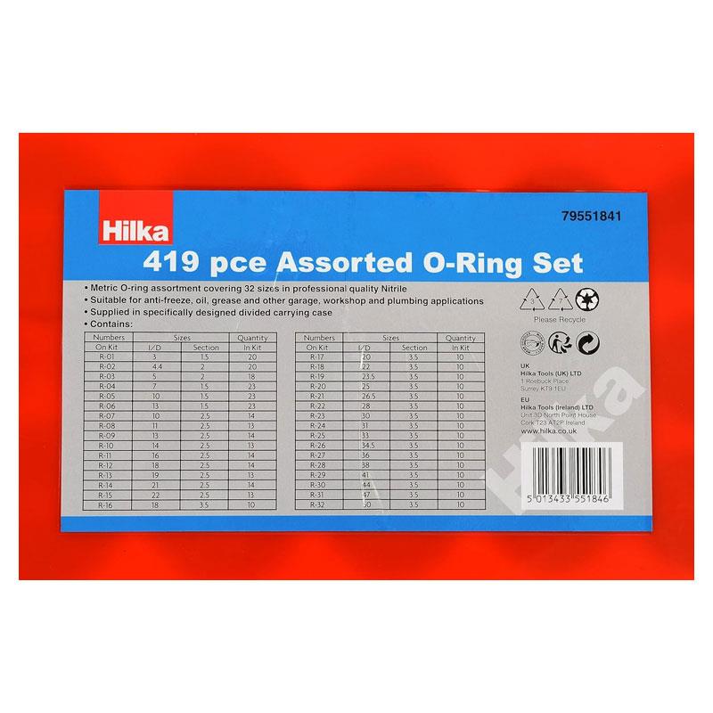 Hilka 419 Piece O-Ring Set | 32 Metric Sizes | Rubber Nitrile Seals in Carry Case | Buy Online UK
