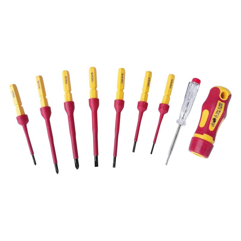 - 9-Piece Versatile Set – Includes flat, cross, and mains tester blades, ideal for a wide range of electrical applications.