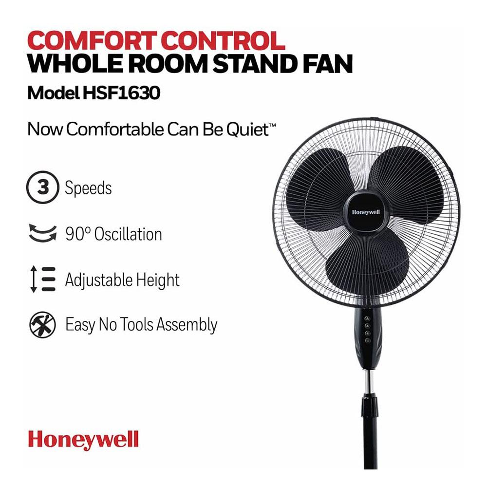 Honeywell Comfort Control Cooling Stand Fan With 3 Speed Settings – Black