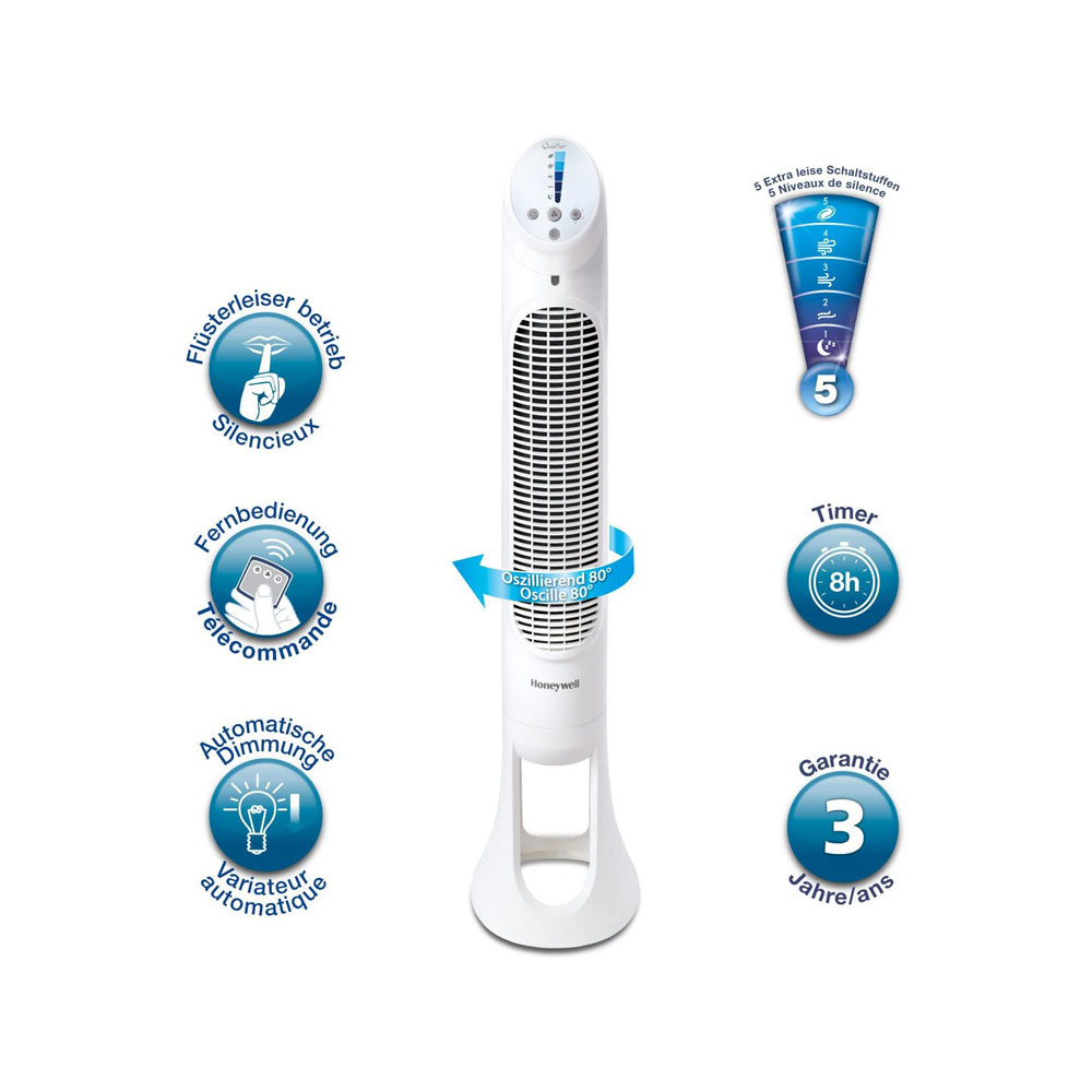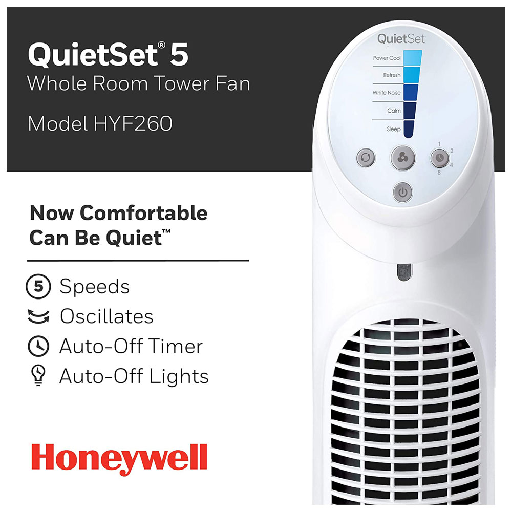 Honeywell Quiet Set Tower Fan With Remote Control – White