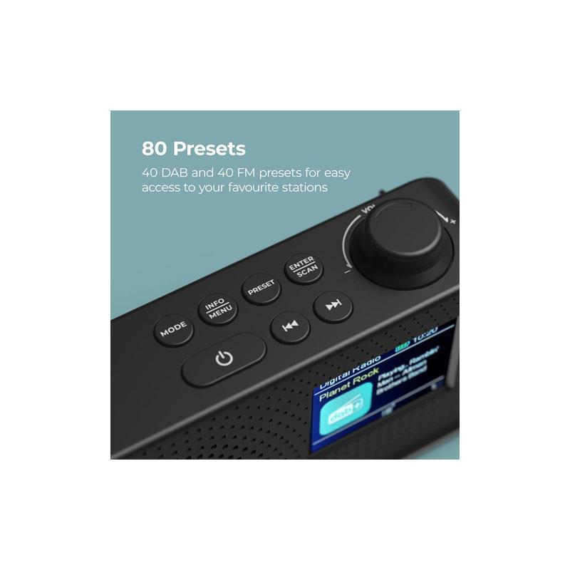 • Store 80 Stations – 40 DAB and 40 FM presets