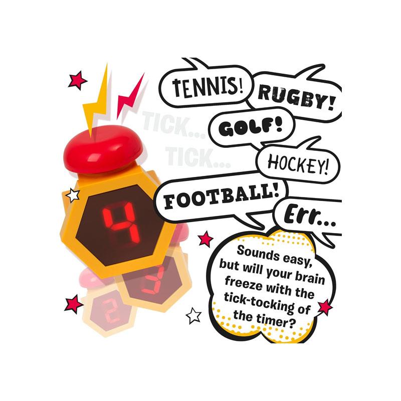 • Quick-Thinking Gameplay: Players must rapidly name items based on prompts while racing against the ticking electronic timer.