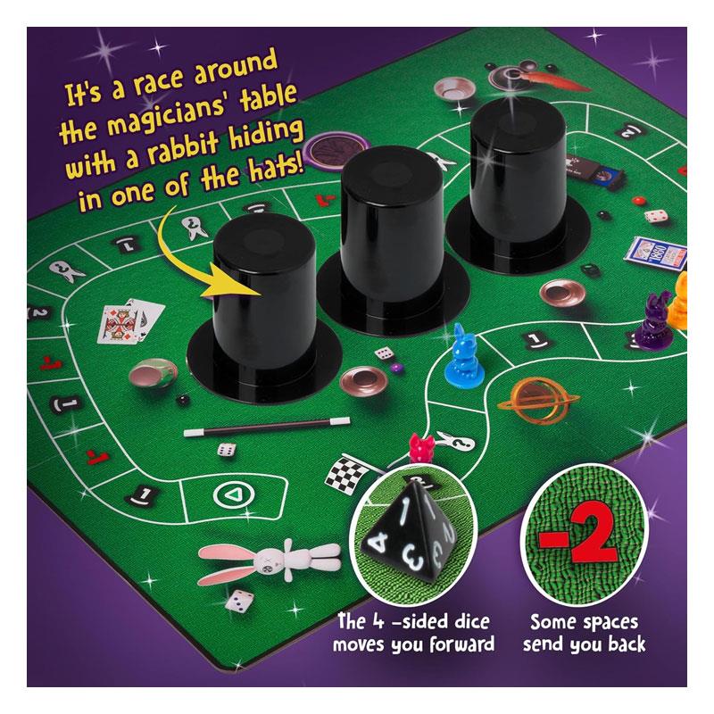 • Included Components: Gameboard, 3 Magic Hats, 1 Rabbit, Magic Wand, Playing Pieces, Dice & Instruction Leaflet