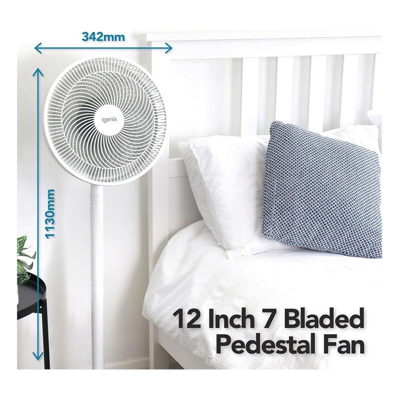Igenix 12 Inch Pedestal Fan 7 Blades Oscillation 3 Speed Settings – White