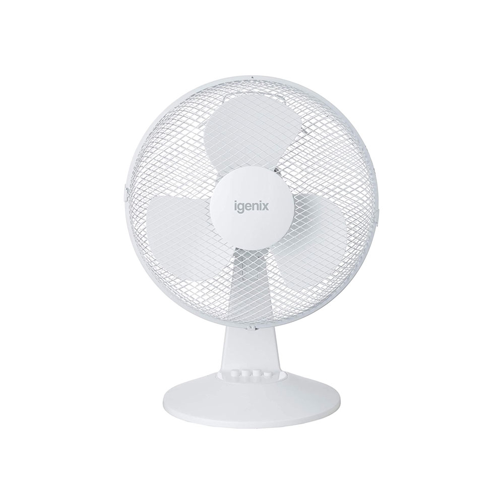 Home / Home & Kitchen / Electrical / Cooling / Igenix 12 Inch Portable Desk Fan 3 Speed Quiet Oscillating Metal/Plastic 35 W – White