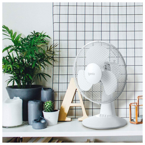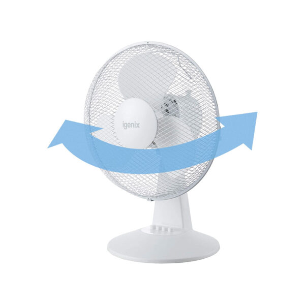Igenix 12 Inch Portable Desk Fan 3 Speed Quiet Oscillating Metal/Plastic 35 W - White - Image 6