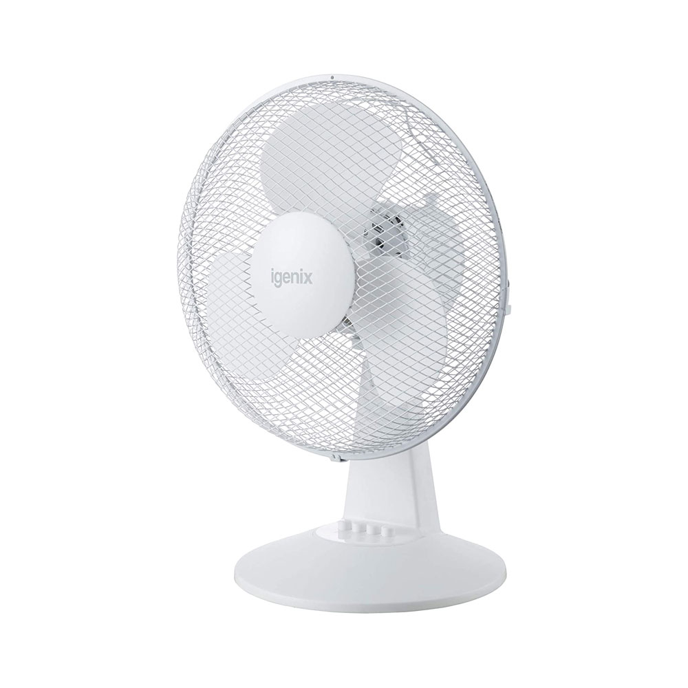 Igenix DF1210 12 Inch Portable Desk Fan 3 Speed Quiet Oscillating And Adjustable Tilt Action Metal/Plastic 35 W – White