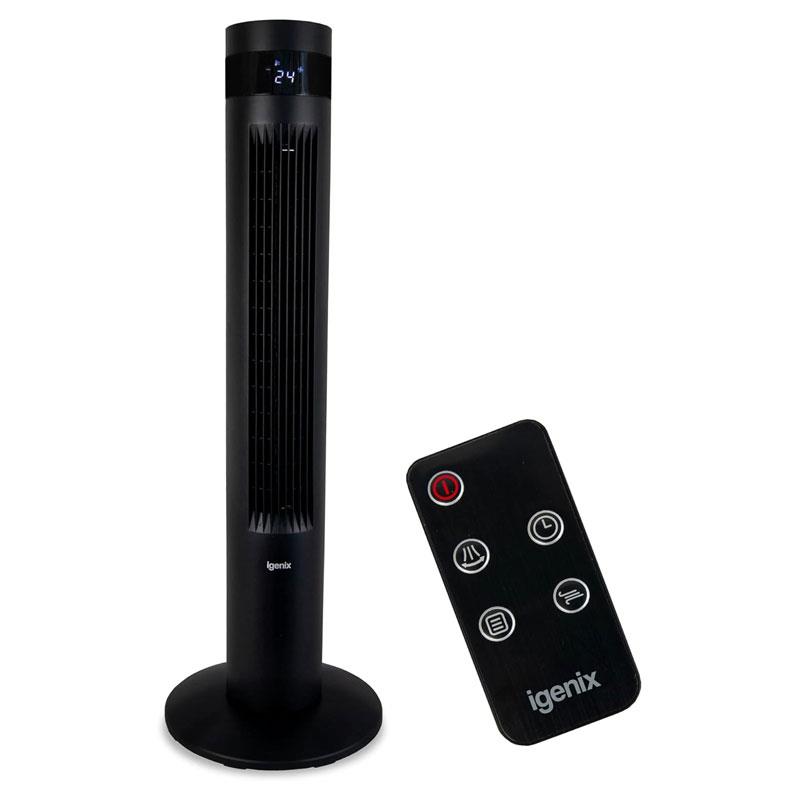 Igenix 35 Inch Oscillating Digital Tower Fan 3 Speed Settings 12 Hour Timer Remote Control - Black