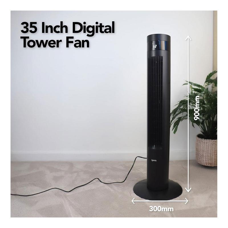 Stay cool and comfortable all year round with the Igenix IGFD6035B Oscillating Digital Tower Fan—a powerful, space-saving solution for home and office cooling. Designed with modern living in mind, this 35-inch black tower fan blends powerful performance with intuitive controls, ensuring optimal airflow and style in any room.