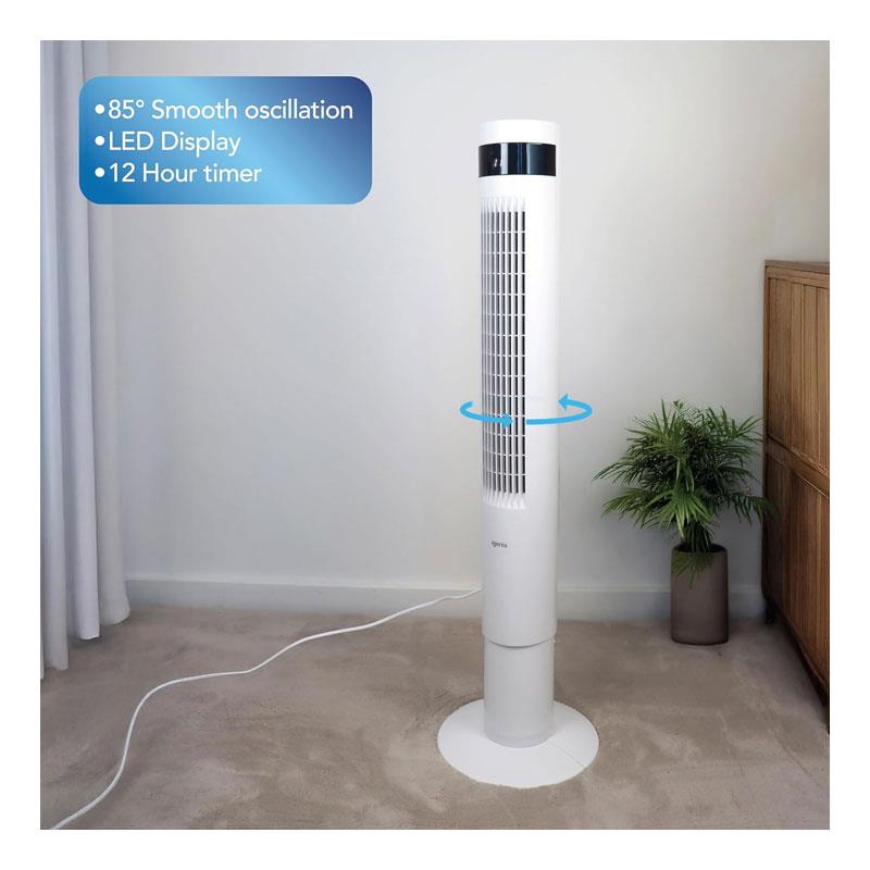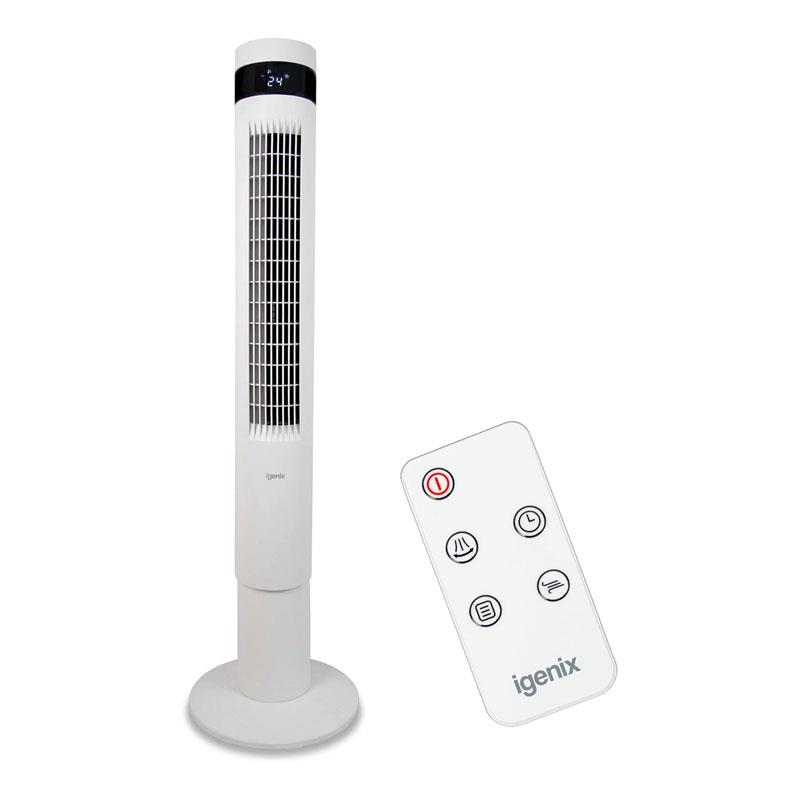 Igenix 43 Inch Digital Tower Fan 3 Speed Settings Remote Control – White