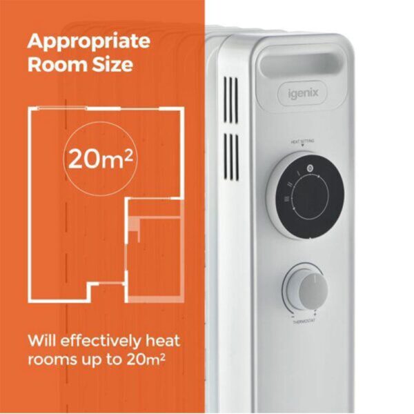 Igenix 9 Fin Oil Filled Radiator With 3 Heat Settings And Overheat Protection 2000W - White - Image 7