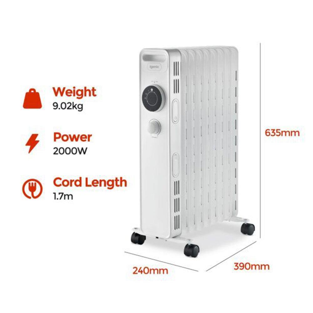 Igenix 9 Fin Oil Filled Radiator With 3 Heat Settings And Overheat Protection 2000W – White