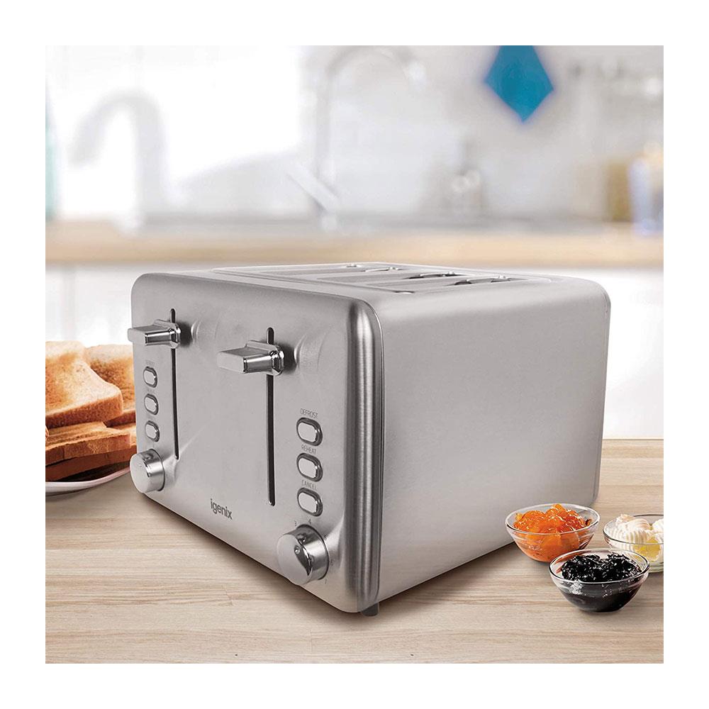 Igenix Deep Slots 4 Slice Toaster With Browning Defrost Reheat Function Stainless Steel 1600W – Silver