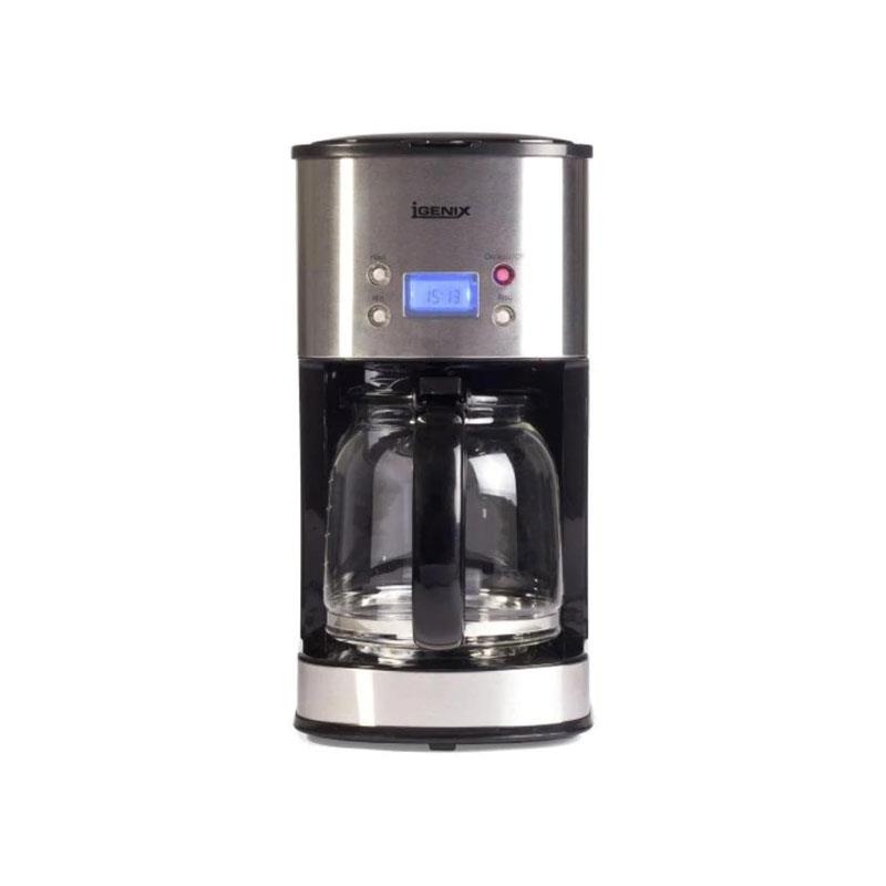 Igenix Digital Filter Coffee Machine Makes 12 Cups of Coffee 24 Hour Timer Metal Stainless Steel 800W 1.5 Litre Silver