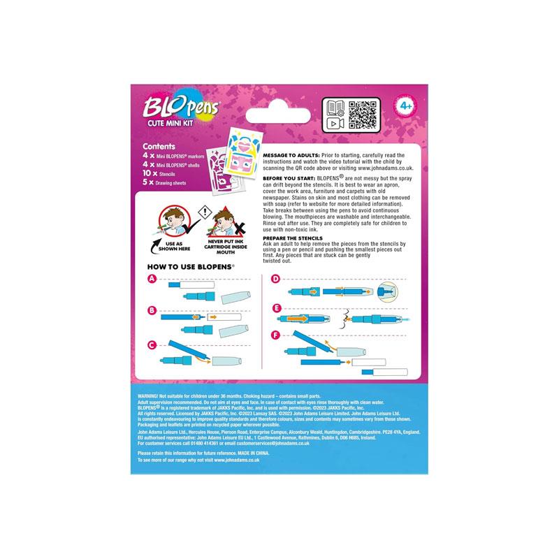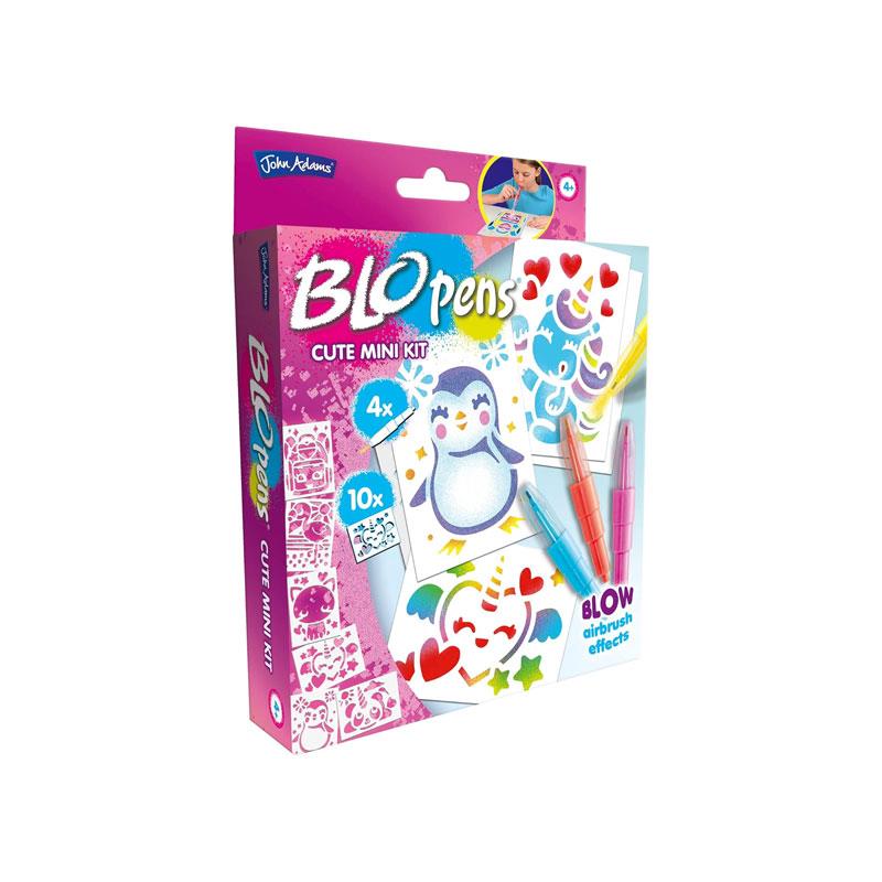 John Adams BLOpens Cute Mini Kit Blow Airbrush Effects ! 4 Mini BLOpens 10 Reusable Stencils 5 Drawing Sheets Multicolour
