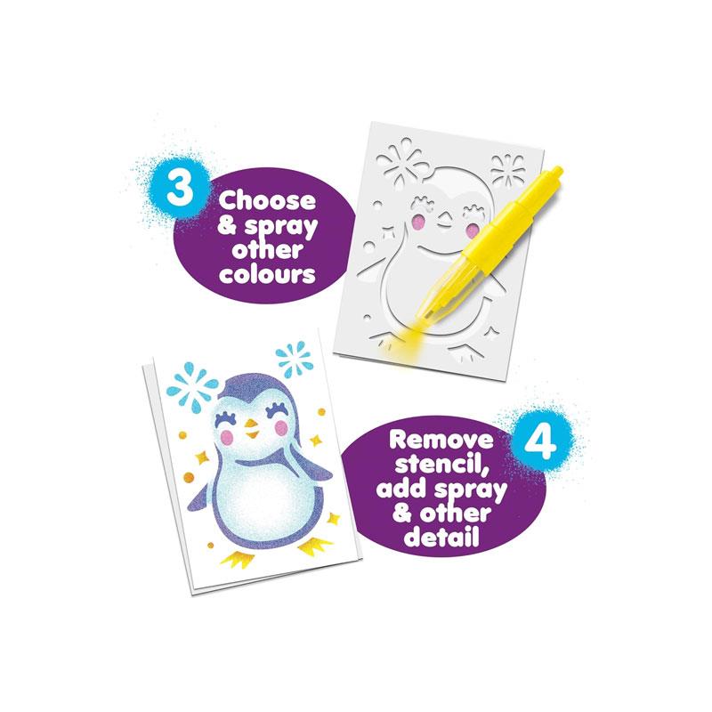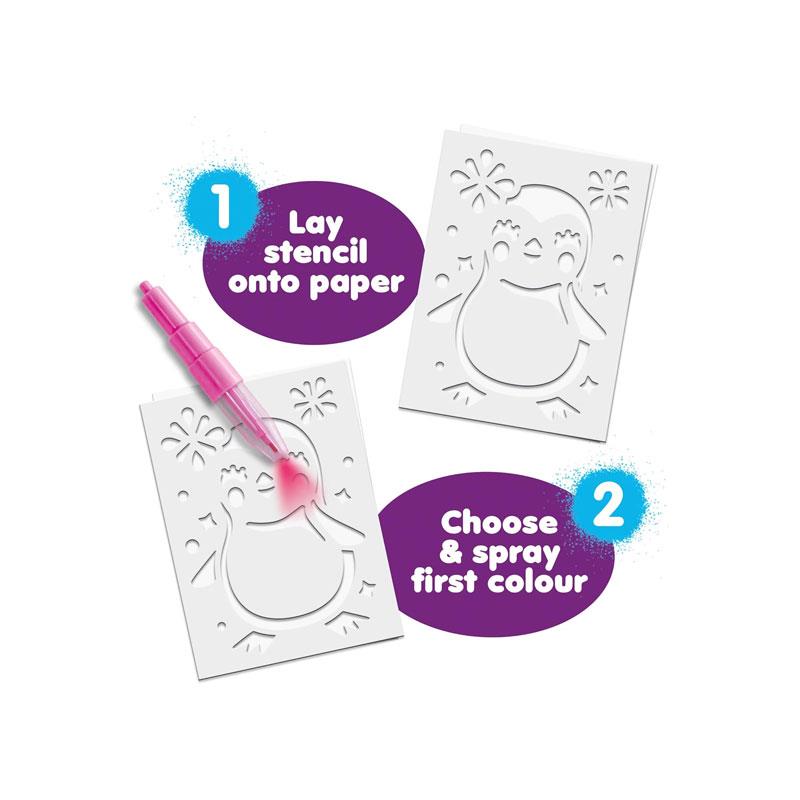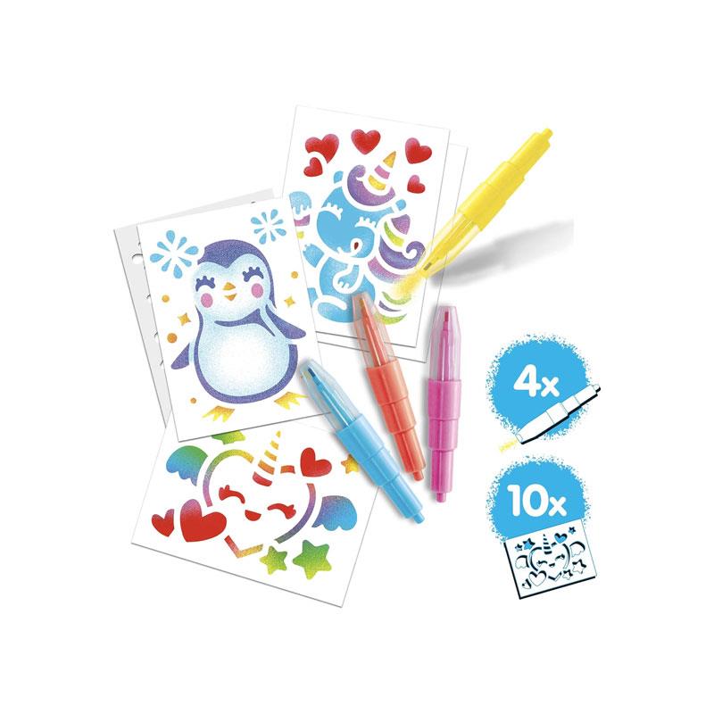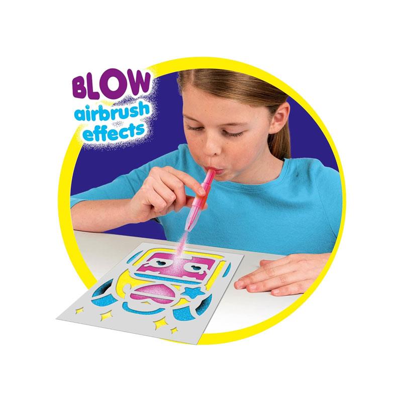 Simply place a stencil on a sheet, blow into the pen, and watch the design appear with magical airbrush effects. Kids can experiment with soft or hard airflow, create circles and lines, and then use the same pens for extra detail.