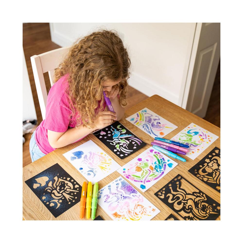 • 6 Reusable Stencils : Create magical designs and scenes with stencils that can be used again and again.